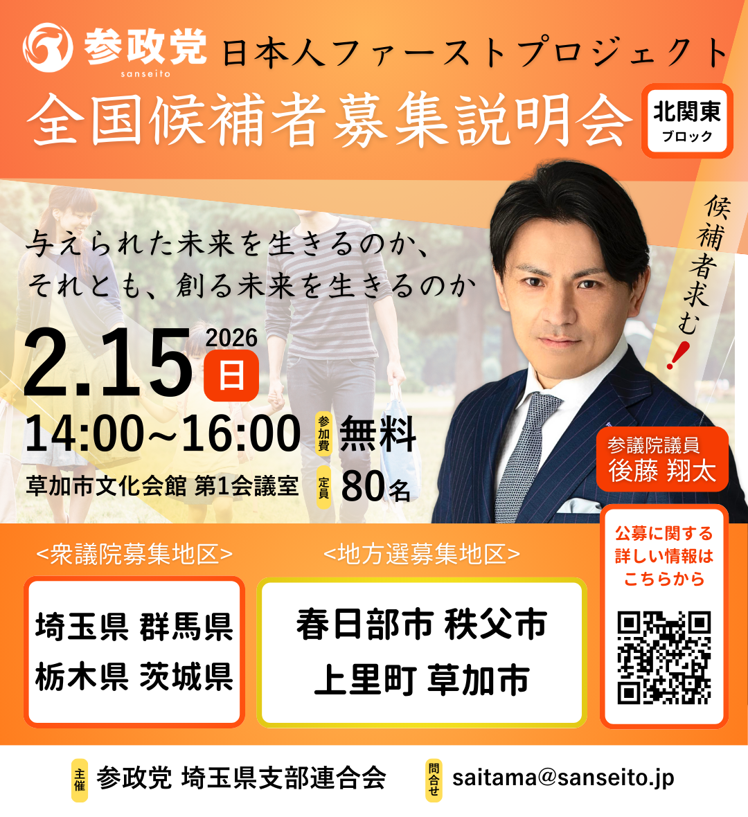 「参政党日本人ファーストプロジェクト 全国候補者募集説明会」